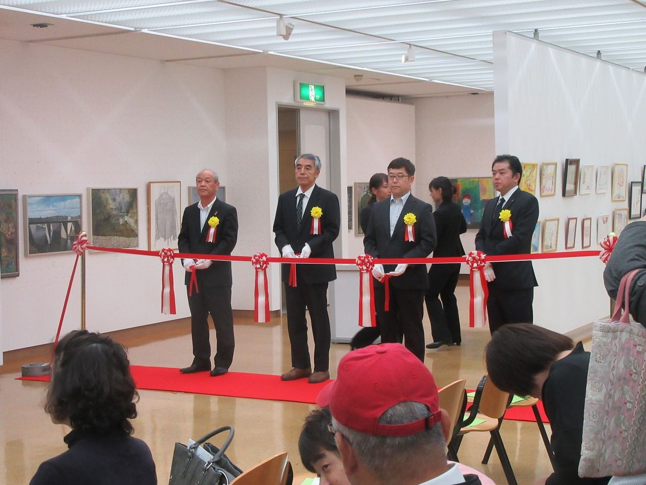 出展作品は、カズさんとアヤカさん(左端)の間にある「家紋曼荼羅」。