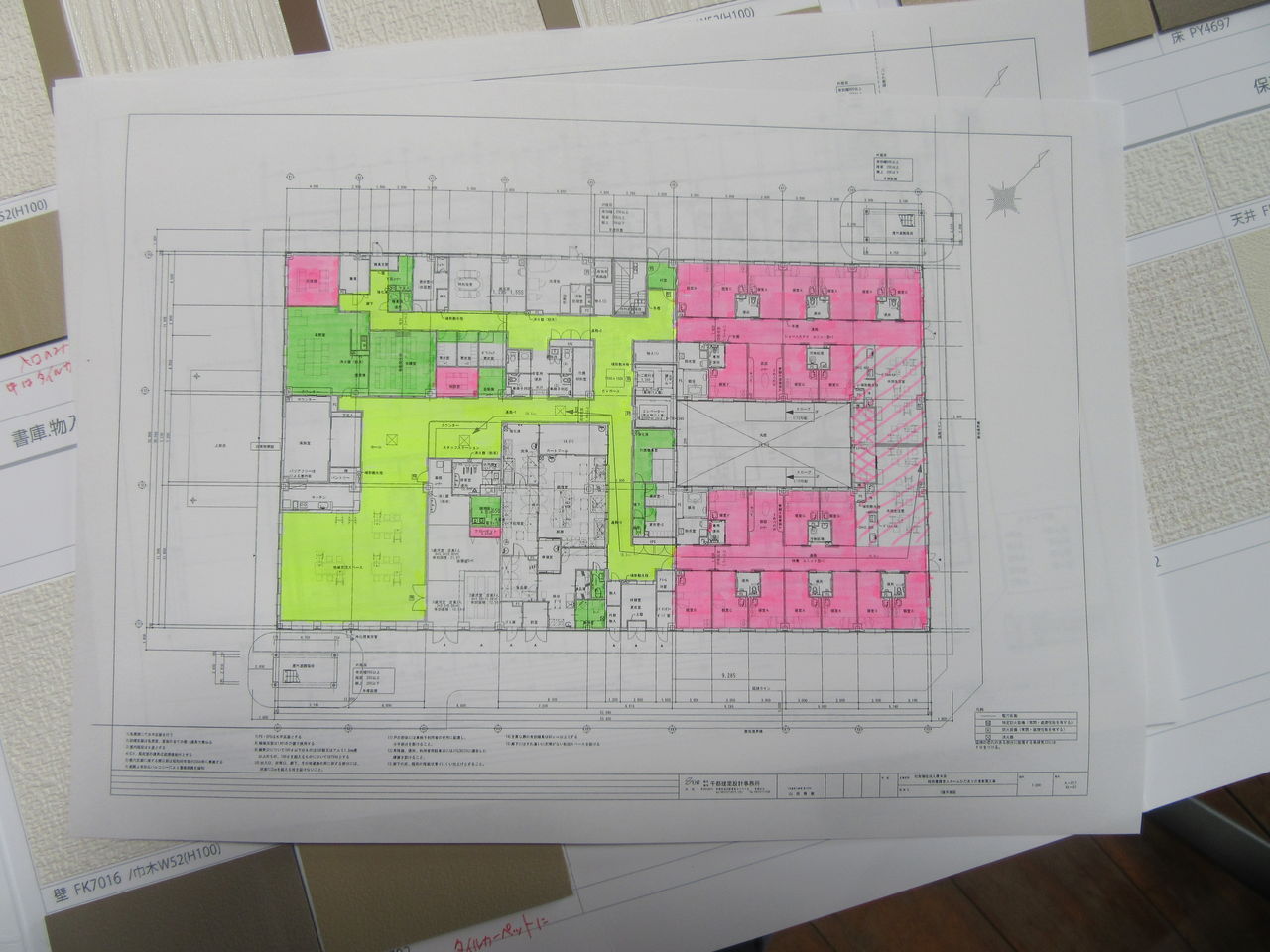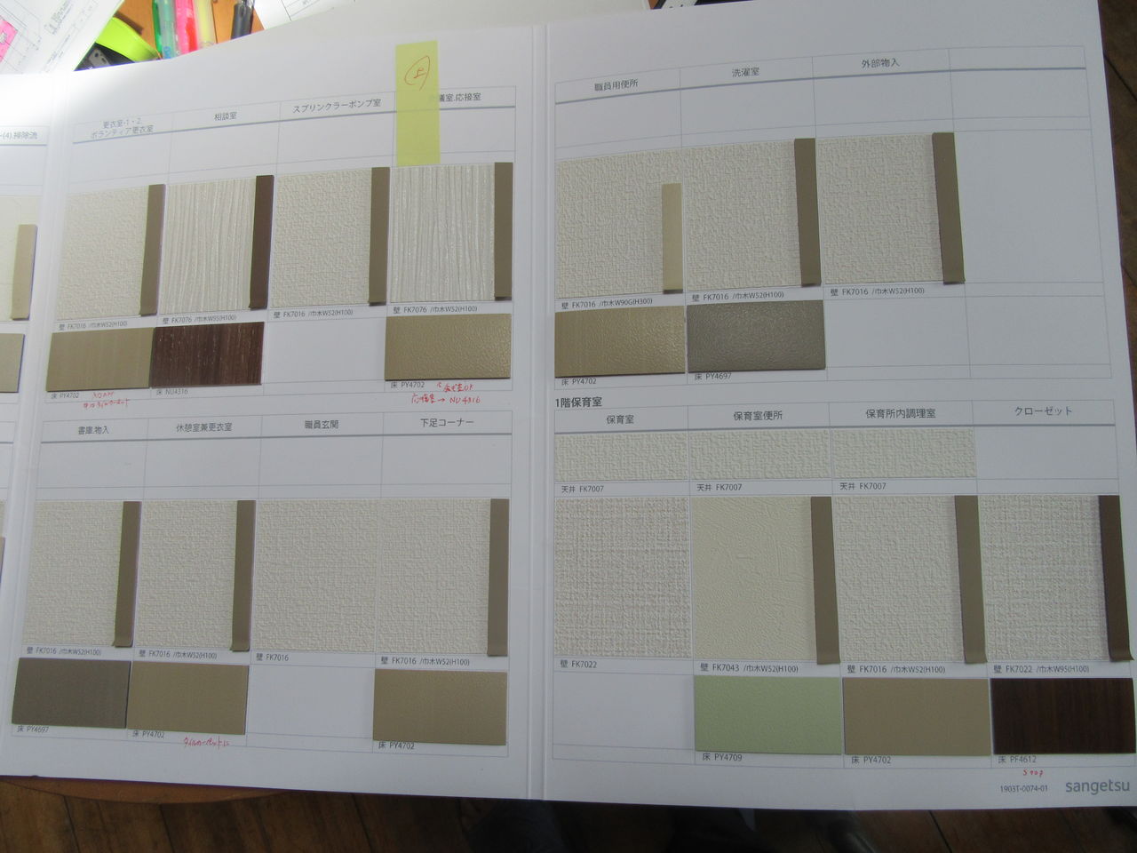 2019年07月10日 き・め・ご・と・・・ 建設工事は順調に進んでいます。ALC(外壁)工事が始まったので建物が、より立体的になってきます。並行していろいろな決めごとも続々とやってきます。外壁の色は10日ほど前に決定し先日は、床材の色を決めました。メーカーさんが提案してきたサンプルをもとに休日にじっくりと自分なりに考え法人の女性職員にも見てもらい(ここ大事!)決定した床材を図面に落とし込みました。出来上がりは、乞うご期待っっ!! 「工事」カテゴリの最新記事 < 前の記事次の記事 > コメント コメントフォーム 名前 コメント 記事の評価 リセット リセット 顔 星 情報を記憶 コメントを投稿する