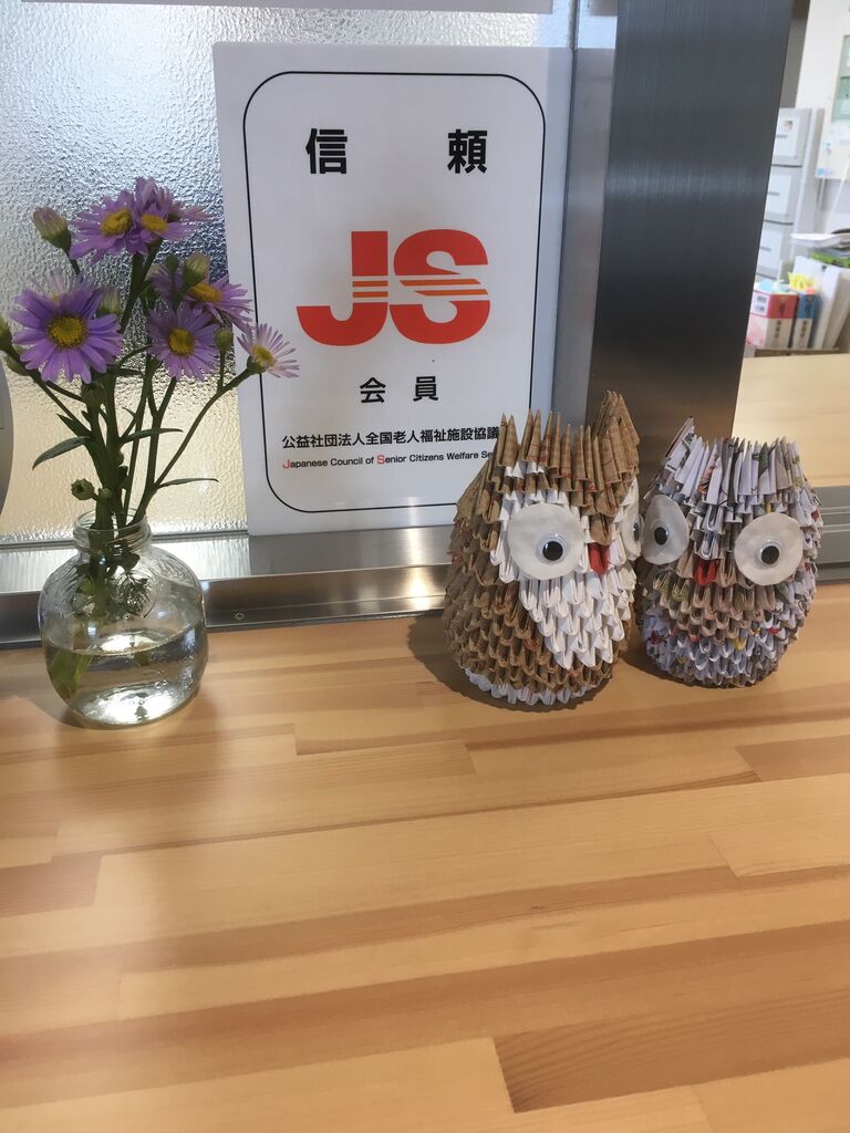 2020年07月12日 癒されます(*´∇`*) 日曜日。やはり土日は面会の方が多いです。ひだまりの里では1階の地域交流スペース「とまり木」にご利用者をお連れして、面会していただいています。今日は、ほっこりしました。とあるご家族が包装紙を折って組み立てた「フクロウ」を持って来てくださいました。さっそく、受付カウンターに飾らせていただきました。こういうものがあるだけで雰囲気がガラッと良くなりますね~ありがたいです。リュウキュウアサガオも元気に、涼しげに咲いてくれています。 「日々のできごと」カテゴリの最新記事 < 前の記事次の記事 > コメント コメントフォーム 名前 コメント 記事の評価 リセット リセット 顔 星 情報を記憶 コメントを投稿する