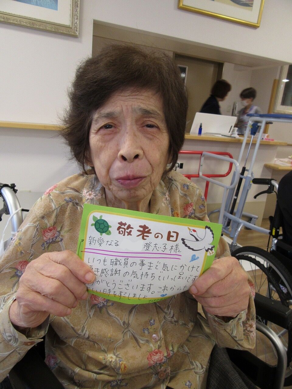 スタッフから、心のこもった「敬老の日カード」を贈呈して