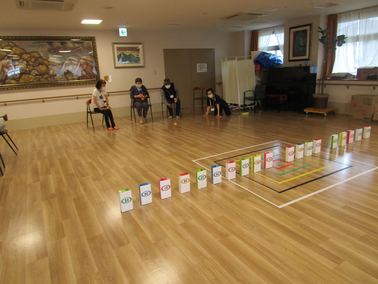 得点が書かれた的に向かって