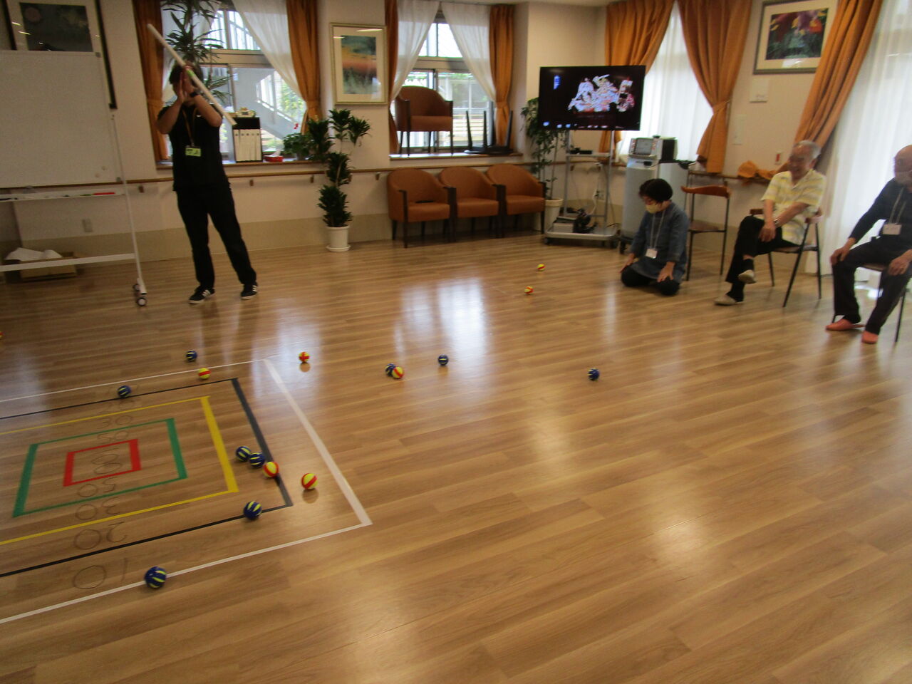 両サイドから、カーリング風に玉を転がします。