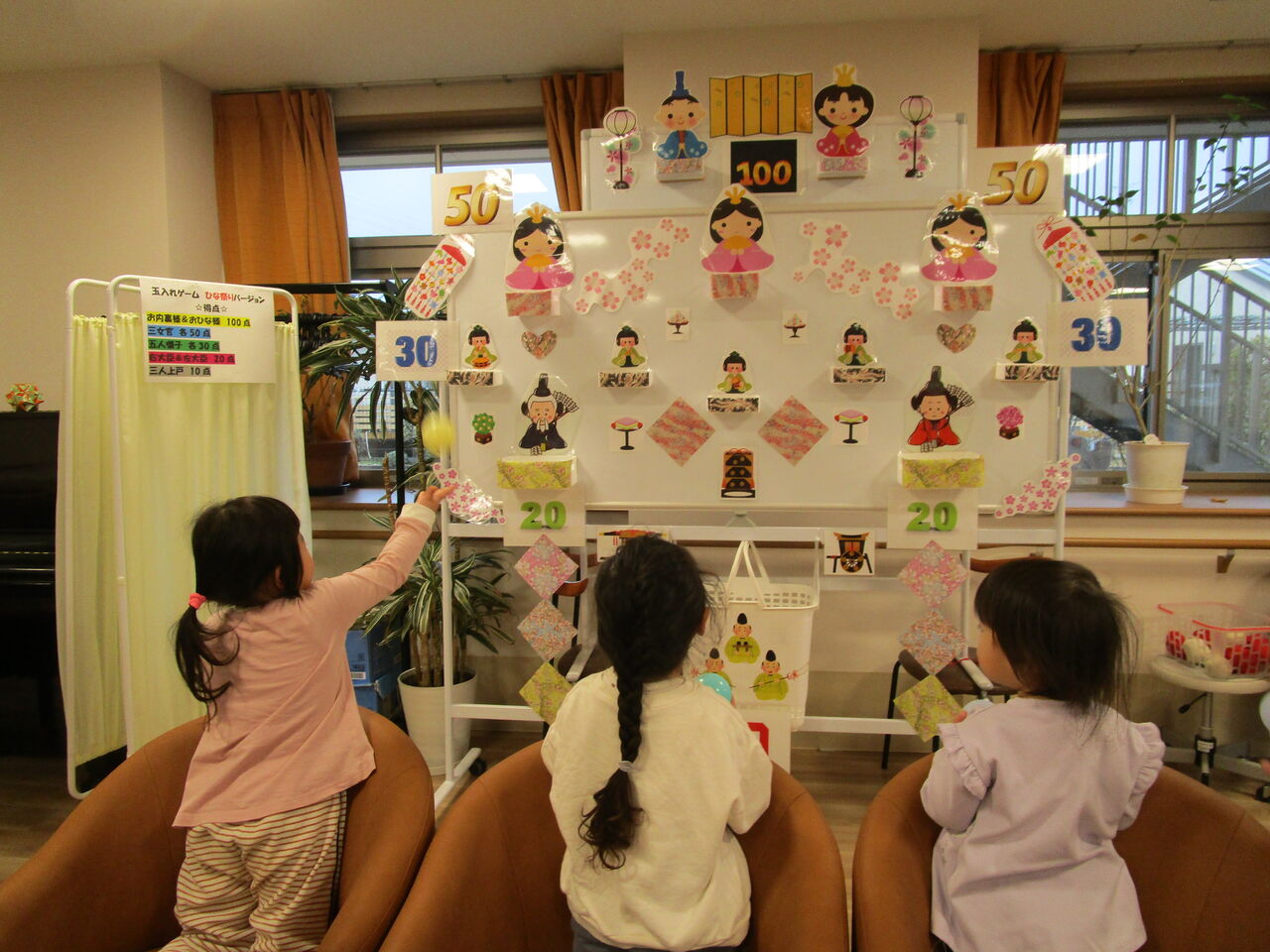 ヨースケ相談員の力作・ひな飾り玉入れも