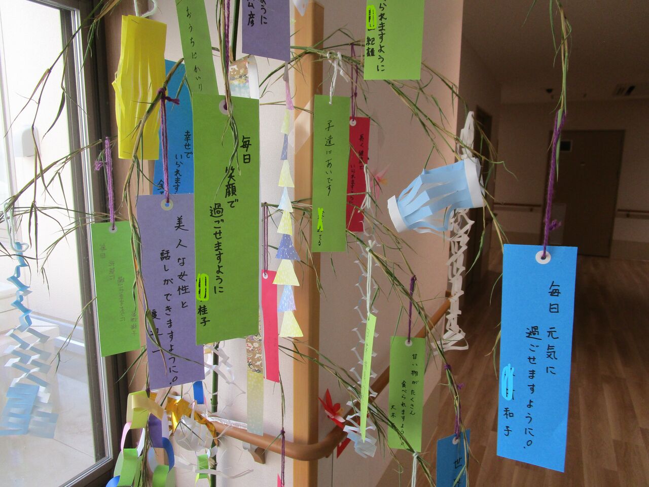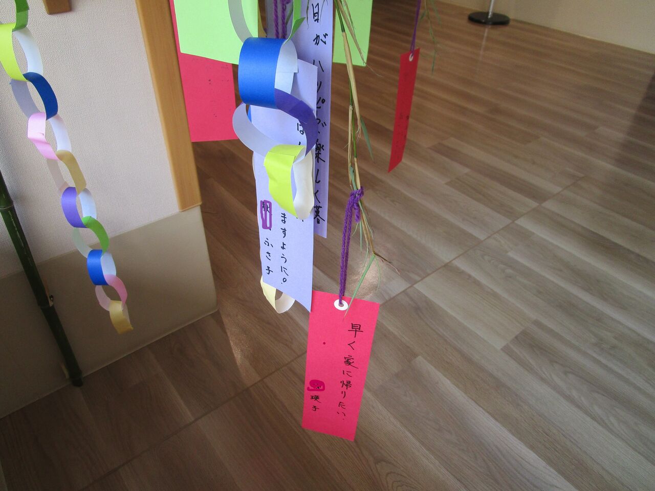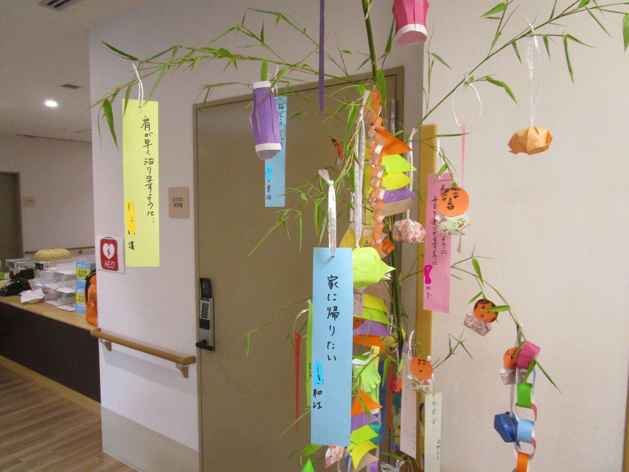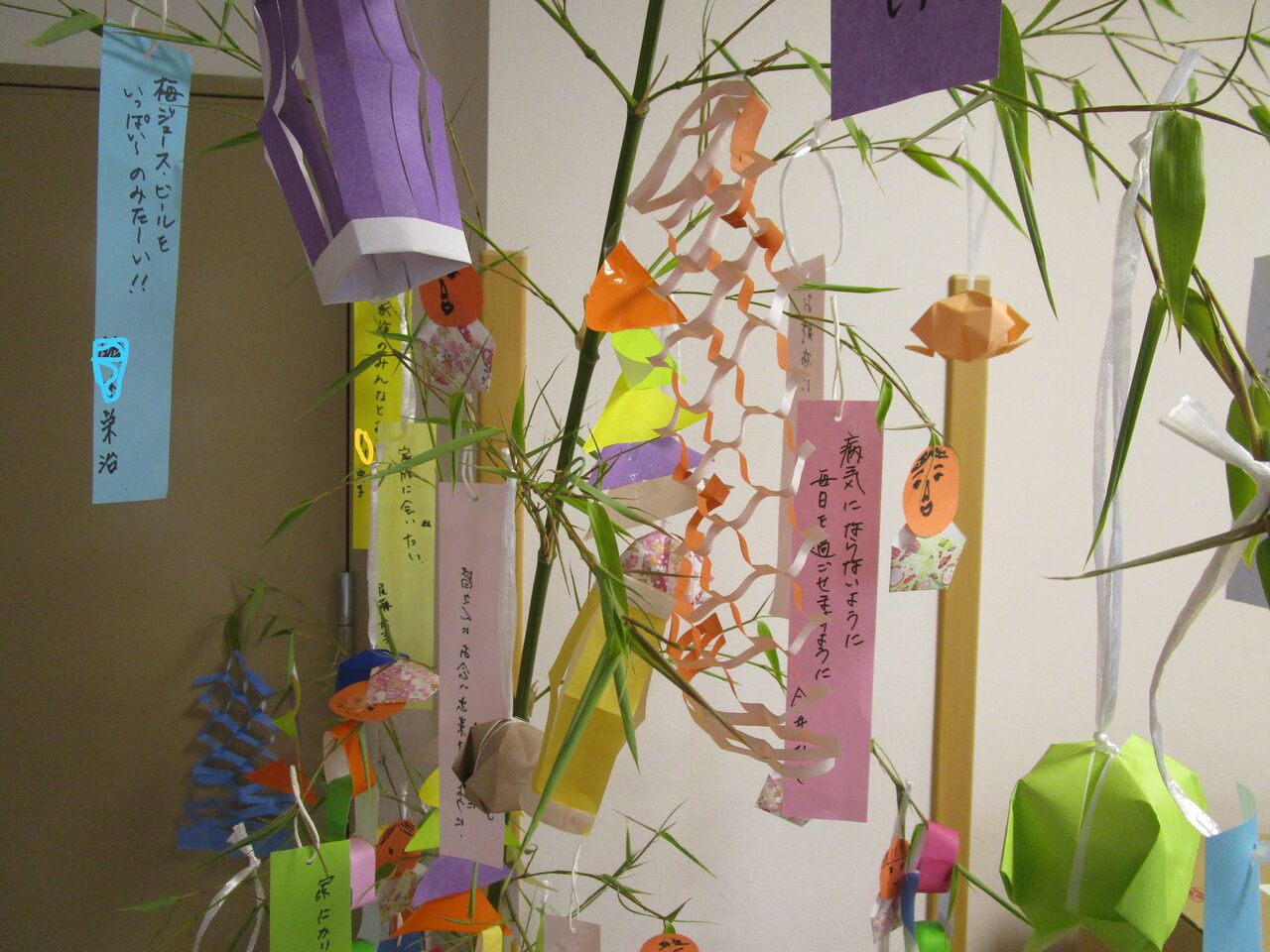 2025年07月07日 七夕☆彡 七夕です皆さん短冊に願いごとを書いてくださいました。まずは、1階。2階は・・・3階です。やっぱり、中には「家に帰りたい・・・」という願いごとも何枚かあって切ないなぁ・・・とは思いますがそんな中でも、ひだまりで少しでも笑顔で過ごしていただけるよう皆で、温かいケアを提供していきたいと思います昼食は、七夕メニューちらし寿司のニンジンやオクラの星形が可愛らしいです 「日々のできごと」カテゴリの最新記事 < 前の記事次の記事 > コメント コメントフォーム 名前 コメント 記事の評価 リセット リセット 顔 星 情報を記憶 コメントを投稿する