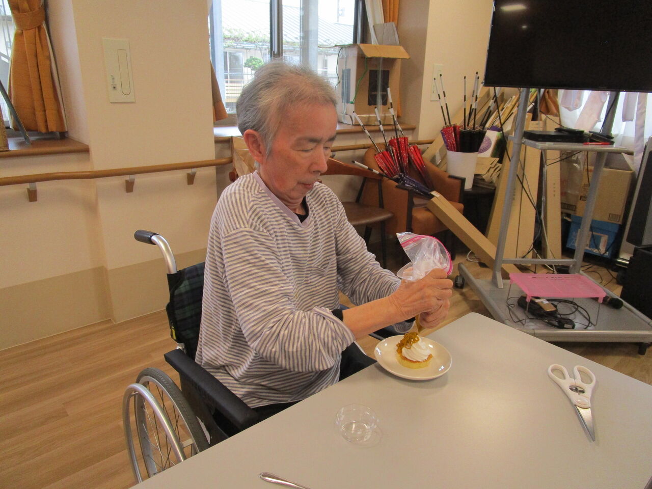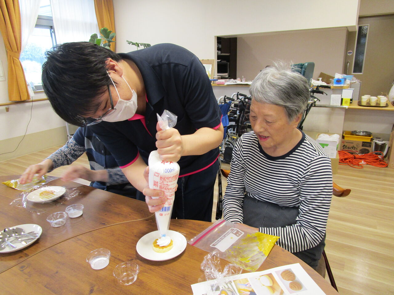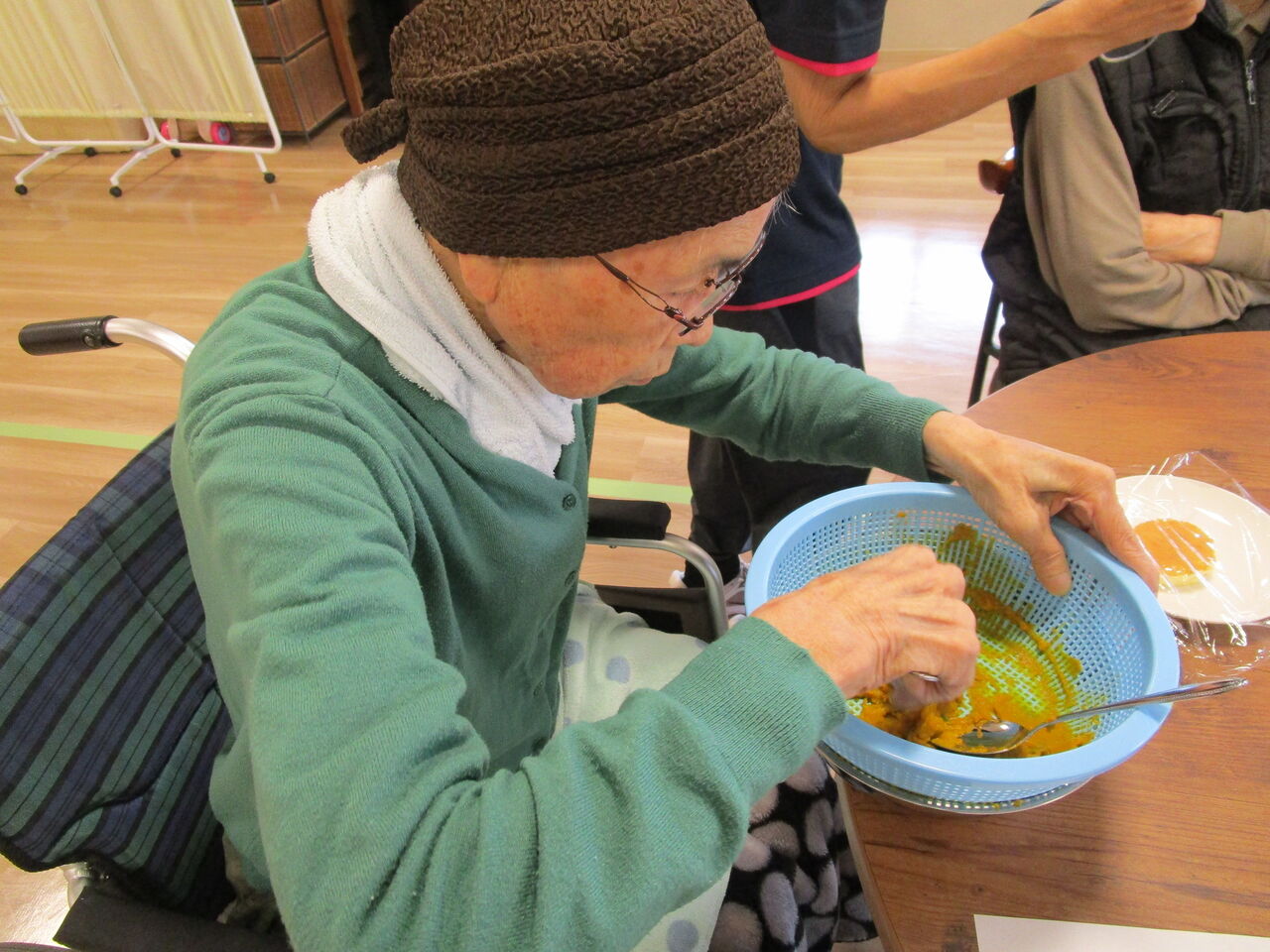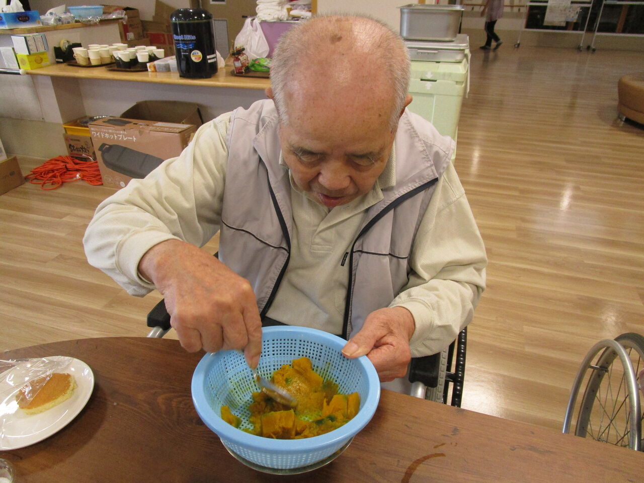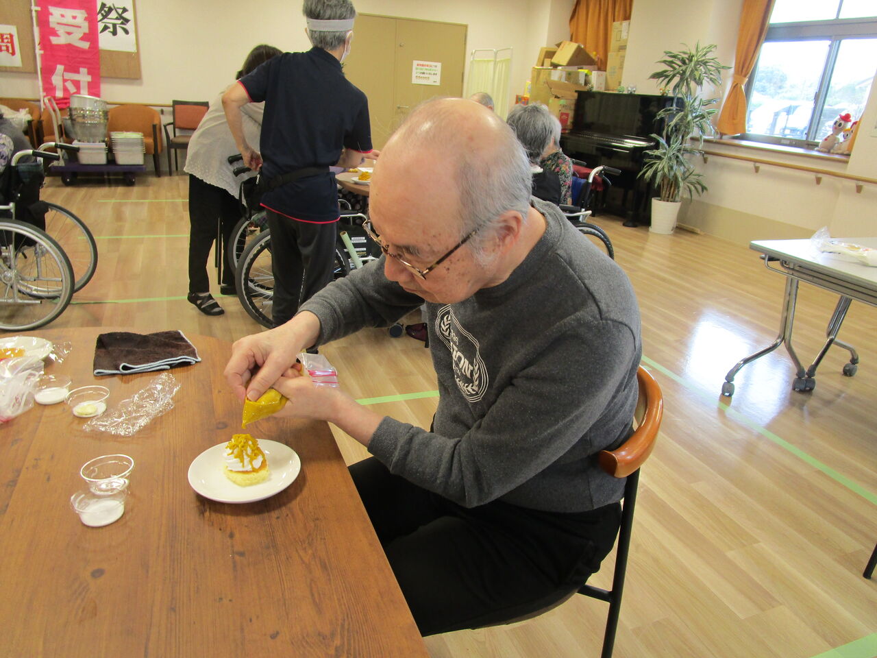 2025年10月09日 かぼちゃモンブラン! 今日のおやつクラブは「かぼちゃのモンブラン」作りです 作り方を熱心に見て・・・かぼちゃを濾します。スポンジの上にホイップクリームを絞ります。濾したかぼちゃに砂糖・バター・生クリームを入れよく揉んだ袋の端を少し切り上から搾りま~~すさぁ、いただきま~~~す今日もワイワイと楽しく美味しいおやつクラブでした 「おやつクラブ」カテゴリの最新記事 < 前の記事次の記事 > コメント コメントフォーム 名前 コメント 記事の評価 リセット リセット 顔 星 情報を記憶 コメントを投稿する