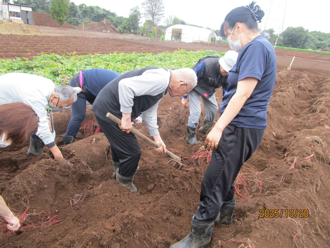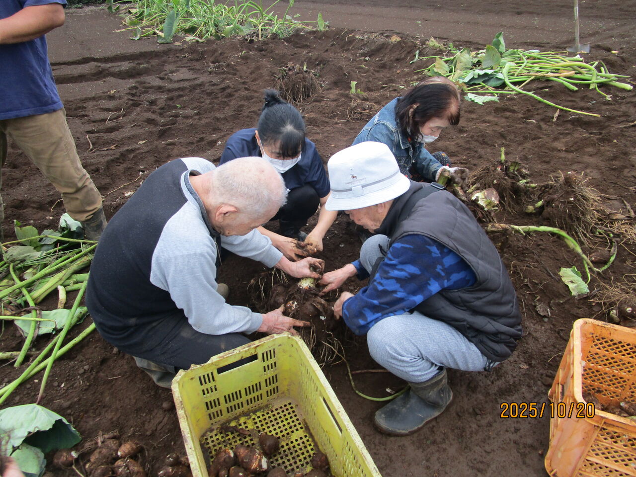 2025年10月24日 芋ほり大会! 秋祭りの余韻冷めやらぬ20日の月曜日に芋ほり大会を開催しました(やるね~、ひだまり!笑)「昔やってたんだから!」とヒデトシさん、張り切ります車椅子の方は、ツル切り部隊🎵午前中が雨だったのでひだまり保育園の園児たちも一緒にお芋ほりただ、生育が今イチだったので里芋畑へ移動~~こちらは、豊作皆さん泥だらけになりながら収穫を楽しんでおられました 「ひだまりケア」カテゴリの最新記事 < 前の記事次の記事 > コメント コメントフォーム 名前 コメント 記事の評価 リセット リセット 顔 星 情報を記憶 コメントを投稿する
