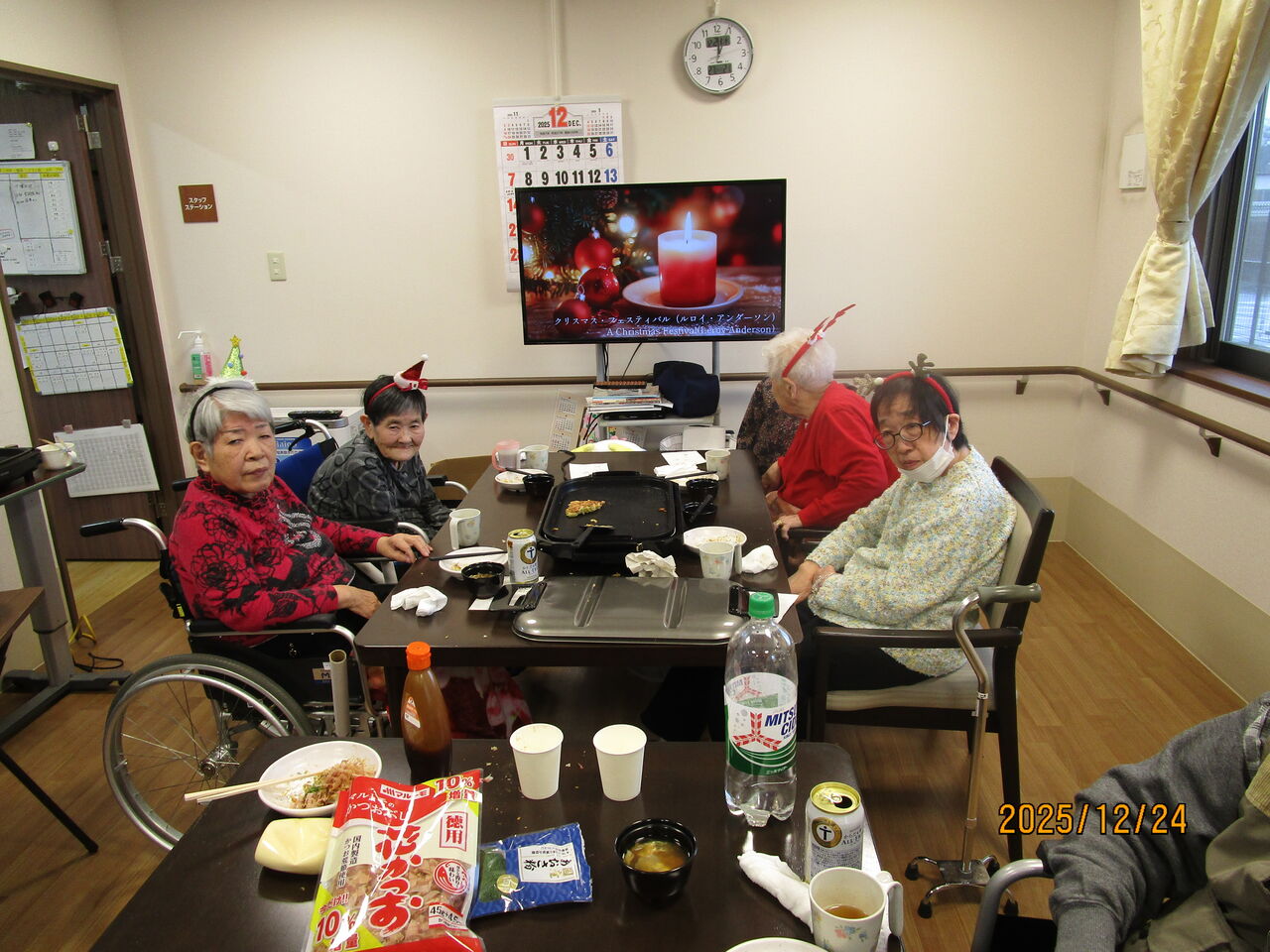 2025年12月25日 鉄板焼きでクリスマス! もんじゃ焼き、でございます🎄手前にあるのは、お好み焼きです🎄「うぐいす・すずめユニット」のクリスマス会は伝統的に『忘年会』の要素が強い感じです奥のテーブル・・・よ~~~く見るとホットプレートの上のお好み焼きが「関東のヒトツノコシ」状態になっております(笑)奥ゆかしい皆さまでございますデザートは「バケツプリン」🍮🍮🍮スタッフが豪快に“入刀”ワイワイと楽しい忘年クリスマス会🎄🎅でした 「うぐいす・すずめユニット」カテゴリの最新記事 < 前の記事次の記事 > コメント コメントフォーム 名前 コメント 記事の評価 リセット リセット 顔 星 情報を記憶 コメントを投稿する