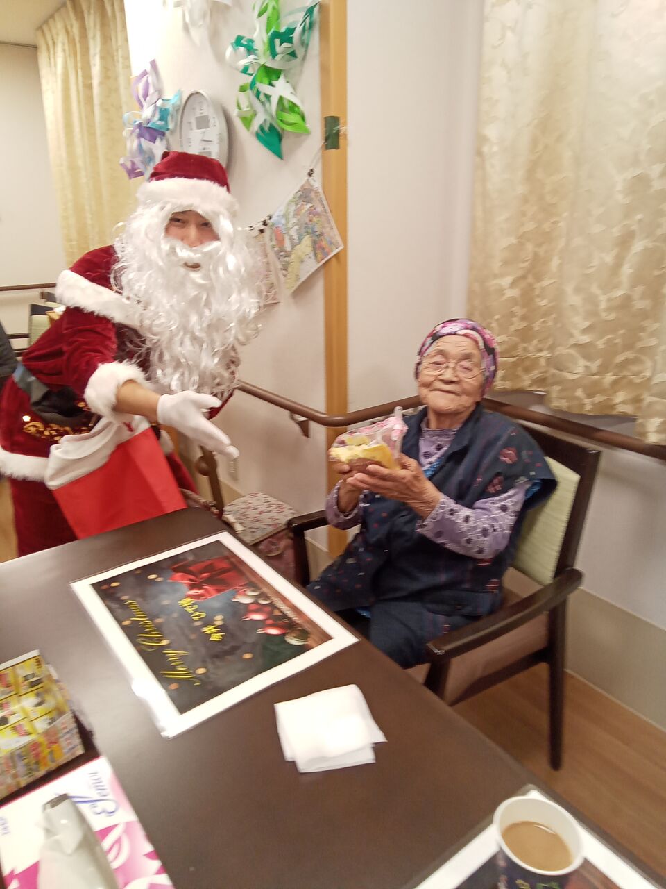 2025年12月26日 Wサンタ登場のクリスマス! 「ひばり・せきれいユニット」のツリー🎄はヒデさんとヒロコさんが飾り付けてくださいましたそして、1日目(12月24日)のサンタクロース🎅登場2日目(25日)おやつのケーキ🍰です何だか、リッパなヒゲと衣装にキラキラがついてますこちらは2日目サンタ🎅毎度おなじみのサンタです笑2日続けてプレゼント🎁をいただけたひばり・せきれいユニットの皆さんはめちゃラッキーでした~~~ 「ひばり・せきれいユニット」カテゴリの最新記事 < 前の記事次の記事 > コメント コメントフォーム 名前 コメント 記事の評価 リセット リセット 顔 星 情報を記憶 コメントを投稿する