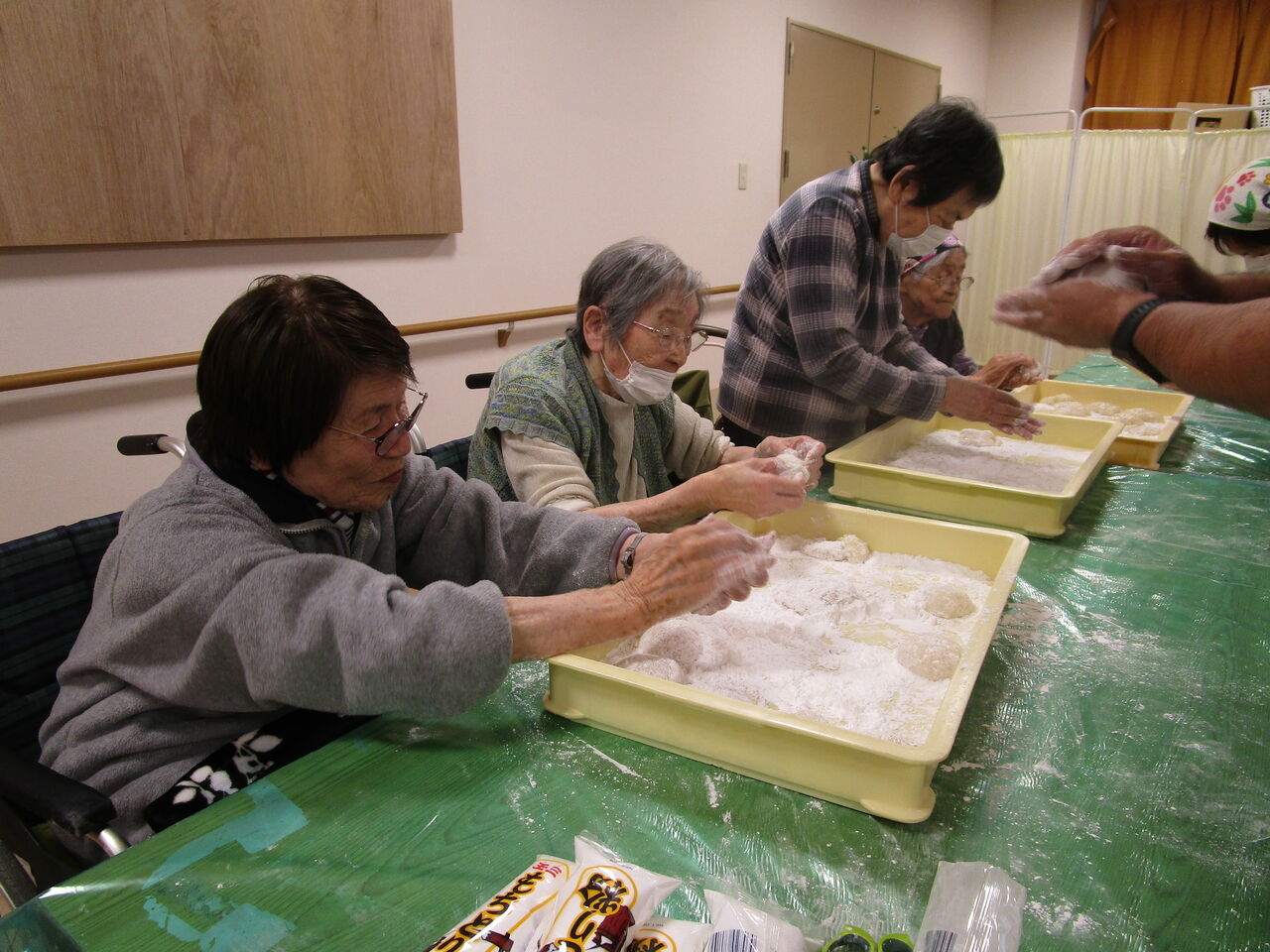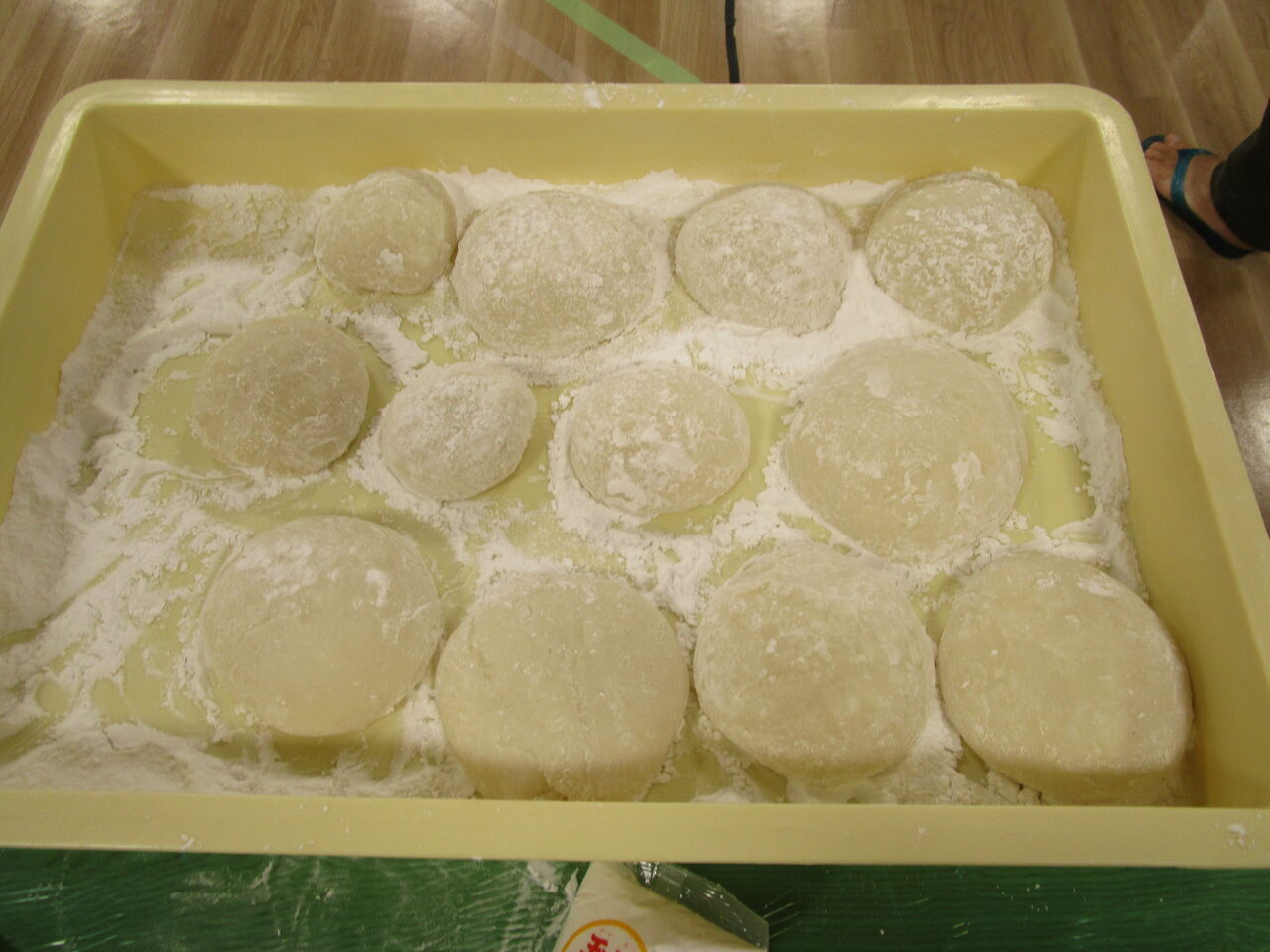 餅とり粉をまぶして、手際よく丸めてくださいます