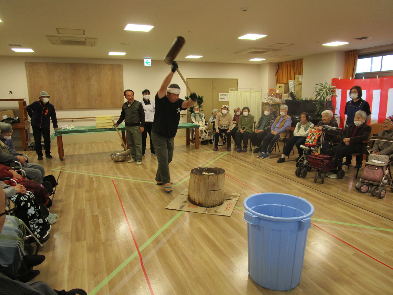 お供え餅が出来て施設内に飾られる様ですね、3臼×2升でしょうか。